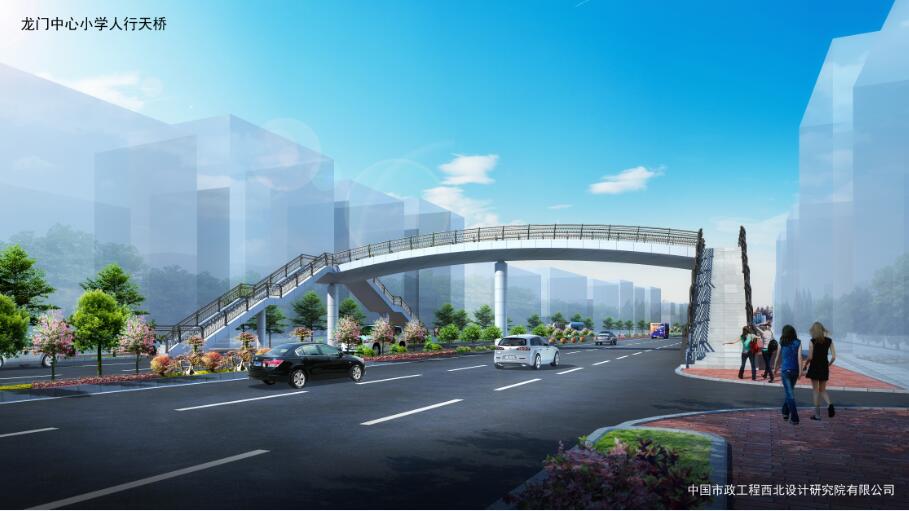 龍門中心小學人行天橋位于羅龍西路龍門中心小學西側(cè)約80米,主梁采用鋼箱型連續(xù)梁,腹板為圓弧形,主梁全長33.8米,寬4米。梯道坡度1:2,長16.9米、寬米,中間設(shè)置緩步平臺??偼顿Y約400萬元。