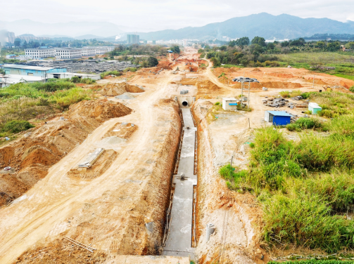 2017年9月開工。目前,下穿車型通道U型槽、箱型通道、排洪溝主體已完成管廊主體結(jié)構(gòu)已完成45米。