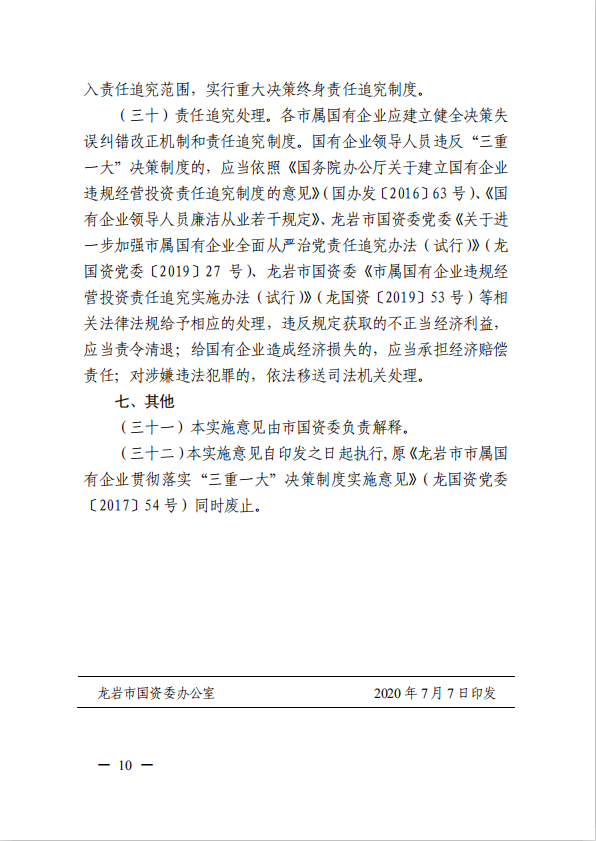 關(guān)于進(jìn)一步規(guī)范市屬國(guó)有企業(yè)貫徹落實(shí)“三重一大”決策制度實(shí)施意見(jiàn)(國(guó)資黨委[2020]21號(hào))